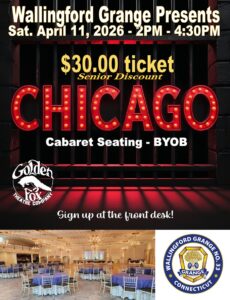 Enjoy an all time favorite musical, Chicago right here in Wallingford. This theater experience can be found at Wallingford Grange. Senior dicount and seats have been set aside for Wallingford Senior Center members. Cabaret Seating, BYOB. Cost $30.00 Registration underway at!