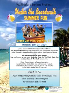 Join us at Grand Oak Villa for our Summer Kick-Off Show! Joey & Doreen Armino bring their Jammin’ Island Band commplete with props and lots of fun! The music is timeless from Jimmy Buffet to Jersey Shore Classics and Summer Songs. This is a celebration of all things summer! Sea Cruise, Dayo, Hot! Hot! Hot!, Beach Boys Medley, Under The Boardwalk to name a few. Chicken Marsala, Roasted Potato, Vegetable, Dessert, Beverage, Carafes of Red & White Wine on every table. Cost: $137.00. Registration begins March.